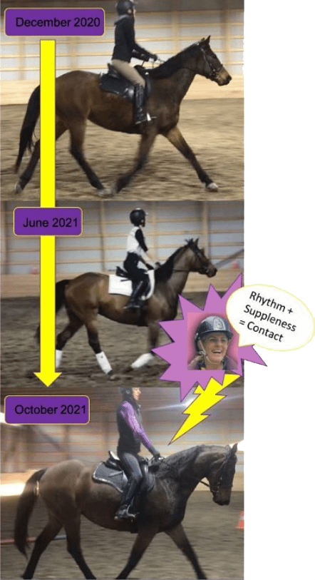 The training scale videos made me find the missing piece: suppleness. Learning that the horse needs to be supple enough to be able to connect was a huge game changer.